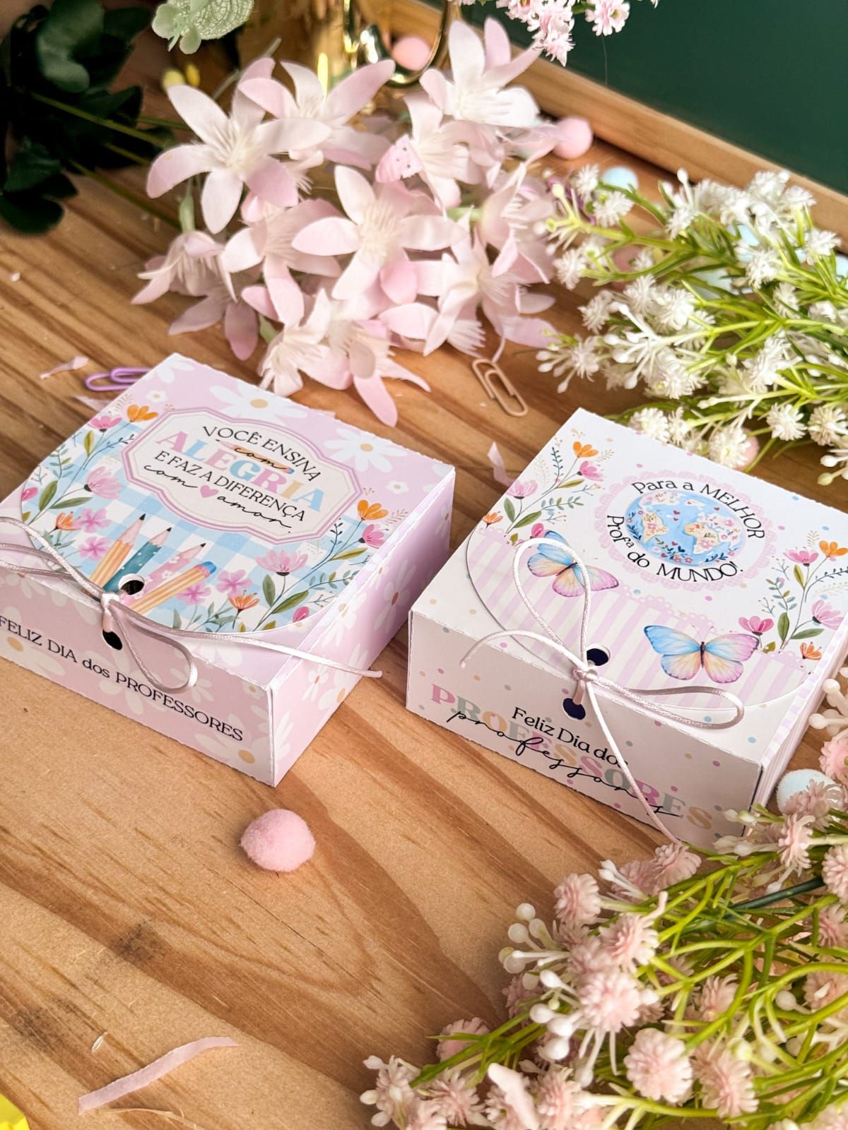 Caixa personalizada Dia dos professores contendo 4 unidades de chocolate Ferrero.